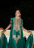 A regal green and red ensemble including a beautiful raw silk shirt embroidered and embellished with pita work detailing on neckline. The neckline is also adorned with gold sequins and naqshi with gold and pink buggle beads and colorful block printed puff sleeves. It is paired with heavily embroidered and embellished red shalwar. It is paired with green organza dupatta with block printed four sided border.
